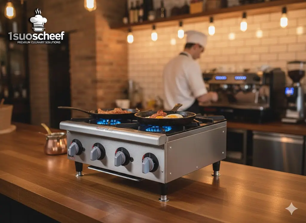 اجاق گاز ۴ شعله رومیزی برند مکث، یکی از پرفروشترین تجهیزات پختوپز برای آشپزخانههایی است که با محدودیت فضا روبرو هستند اما به قدرت حرارتی بالایی نیاز دارند. این دستگاه با طراحی ارگونومیک و بدنه بسیار مستحکم، انتخابی ایدهآل برای فستفودها، رستورانها و کترینگها محسوب میشود.ویژگیهای برجسته محصول:بدنه تمام استیل ضدزنگ: استفاده از ورق استیل باکیفیت باعث مقاومت بالای دستگاه در برابر رطوبت، حرارت زیاد و ضربه شده و نظافت آن را بسیار آسان میکند.شعلههای چدنی پرقدرت: این اجاق دارای ۴ شعله چدنی سنگین و نشکن است که حرارت را به صورت کاملاً یکنواخت به زیر قابلمه و تابه منتقل میکند.طراحی رومیزی و بهینه: به دلیل ابعاد مناسب، این اجاق گاز فضای بسیار کمی اشغال کرده و به راحتی روی میزهای کار استیل قرار میگیرد.ولومهای مقاوم به حرارت: ولومهای تنظیم گاز از متریال نسوز ساخته شدهاند تا در طولانی مدت بر اثر گرما دچار آسیب نشوند
